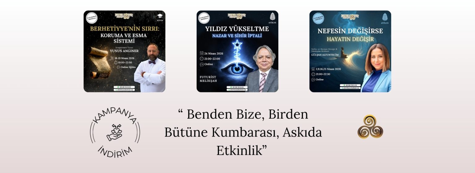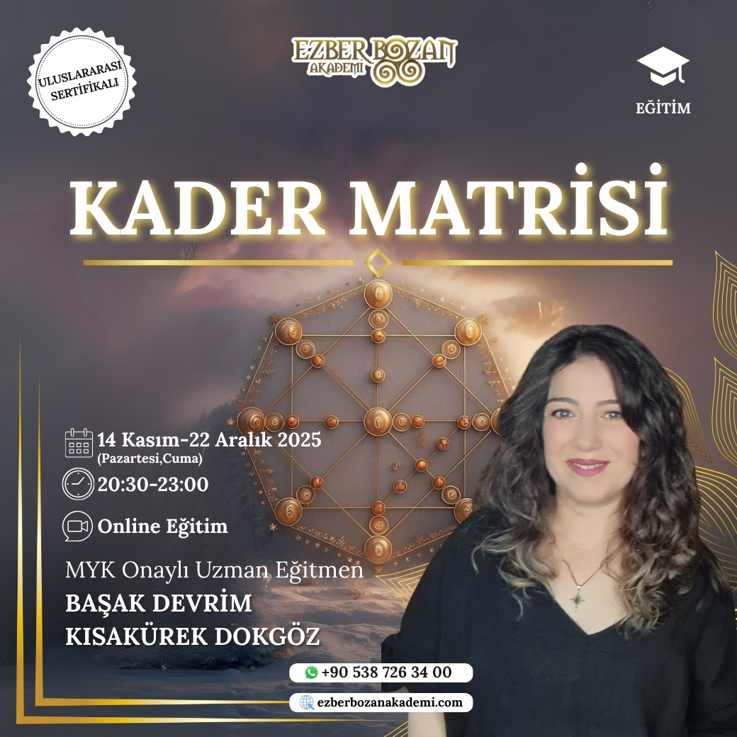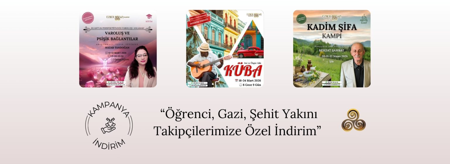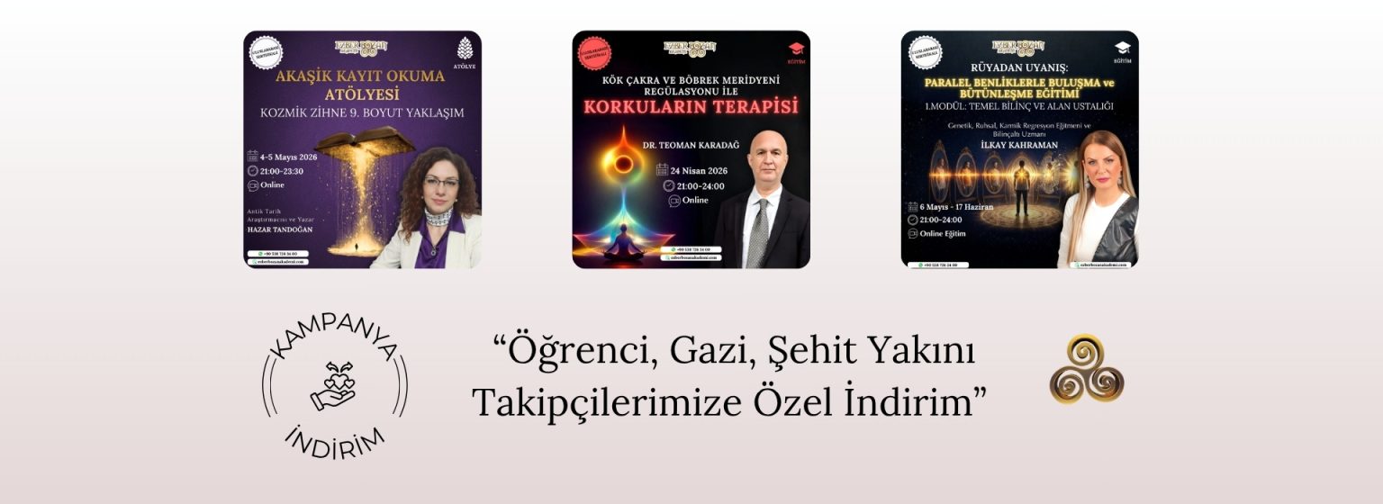Ezber Bozan Akademi ile çok farklı ve ilgi çekici konularda, alanının en iyi eğitmenleriyle eğitimlerimize katılabilir, sır yolculuğunda yetkinliklerinizi geliştirerek kişisel gelişiminizi artırabilirsiniz. Aşağıda yer alan güncel eğitimlerimizi inceleyebilir, dilerseniz TÜM EĞİTİMLERİMİZİ İNCELEYİN butonunu kullanarak gerçekleştirdiğimiz tüm eğitimleri görebilirsiniz.