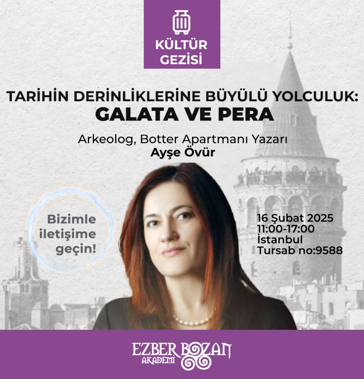📢 Ezber Bozan Akademi organizasyonuyla “Tarihin Derinliklerine Büyülü Yolculuk: Galata ve Pera” kültür gezisi kapsamında Botter Apartmanı Yazarı, Arkeolog Ayşe Övür, İstanbul’da sizlerle buluşacak!