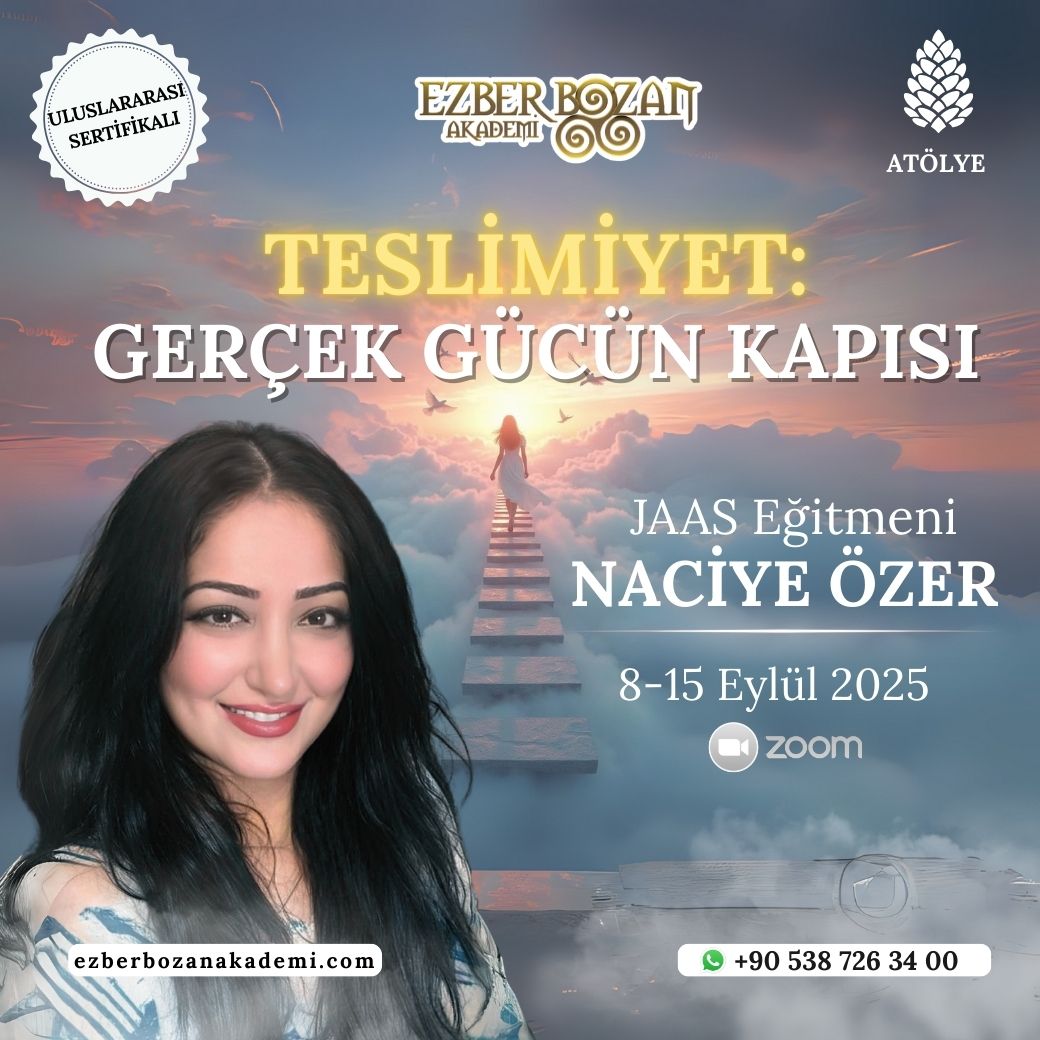📢 “Teslimiyet: Gerçek Gücün Kapısı” atölyesi ile JAAS Eğitmeni Naciye Özer, 8-15 Eylül 2025 tarihlerinde Ezber Bozan Akademi’de sizlerle buluşacak!