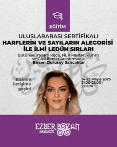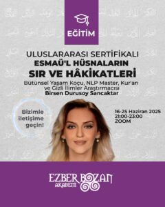 Ezber Bozan Akademi ile çok farklı ve ilgi çekici konularda, alanının en iyi eğitmenleriyle eğitimlerimize katılabilir, sır yolculuğunda yetkinliklerinizi geliştirerek kişisel gelişiminizi artırabilirsiniz. Aşağıda yer alan güncel eğitimlerimizi inceleyebilir, dilerseniz TÜM EĞİTİMLERİMİZİ İNCELEYİN butonunu kullanarak gerçekleştirdiğimiz tüm eğitimleri görebilirsiniz.
