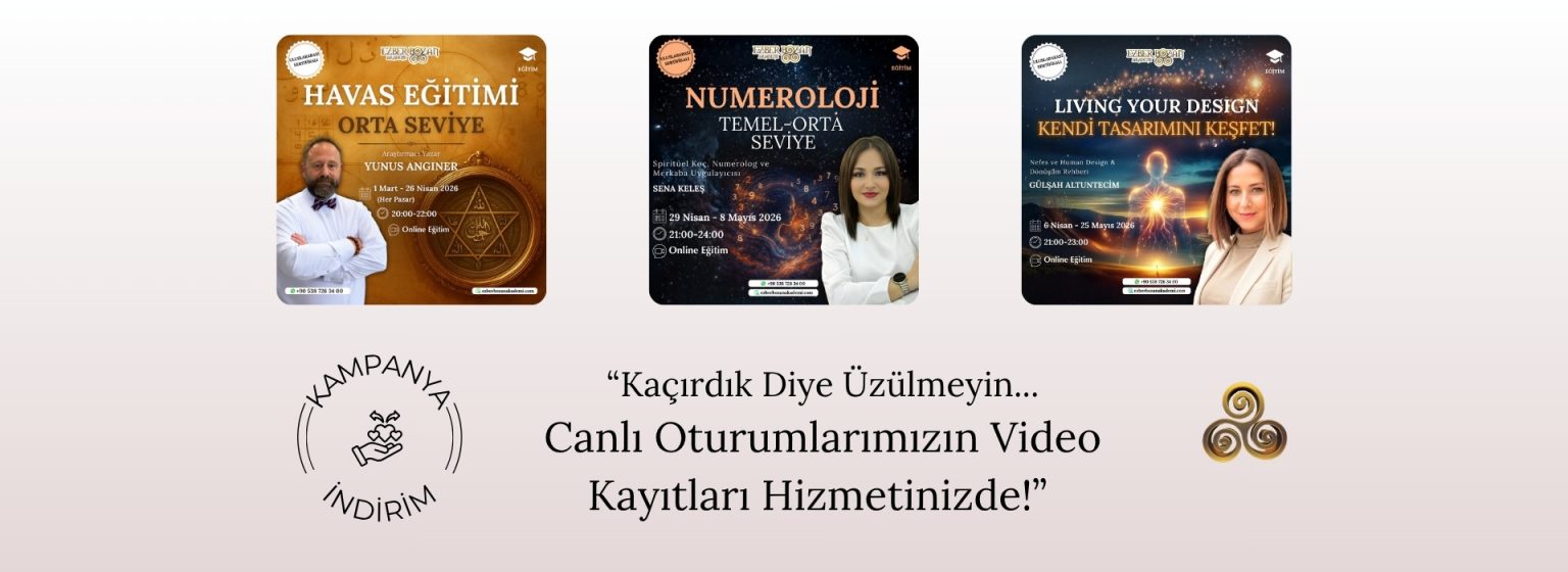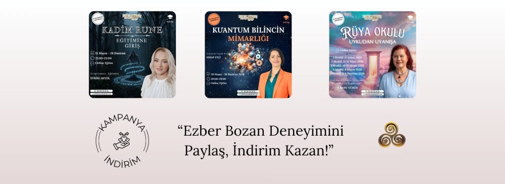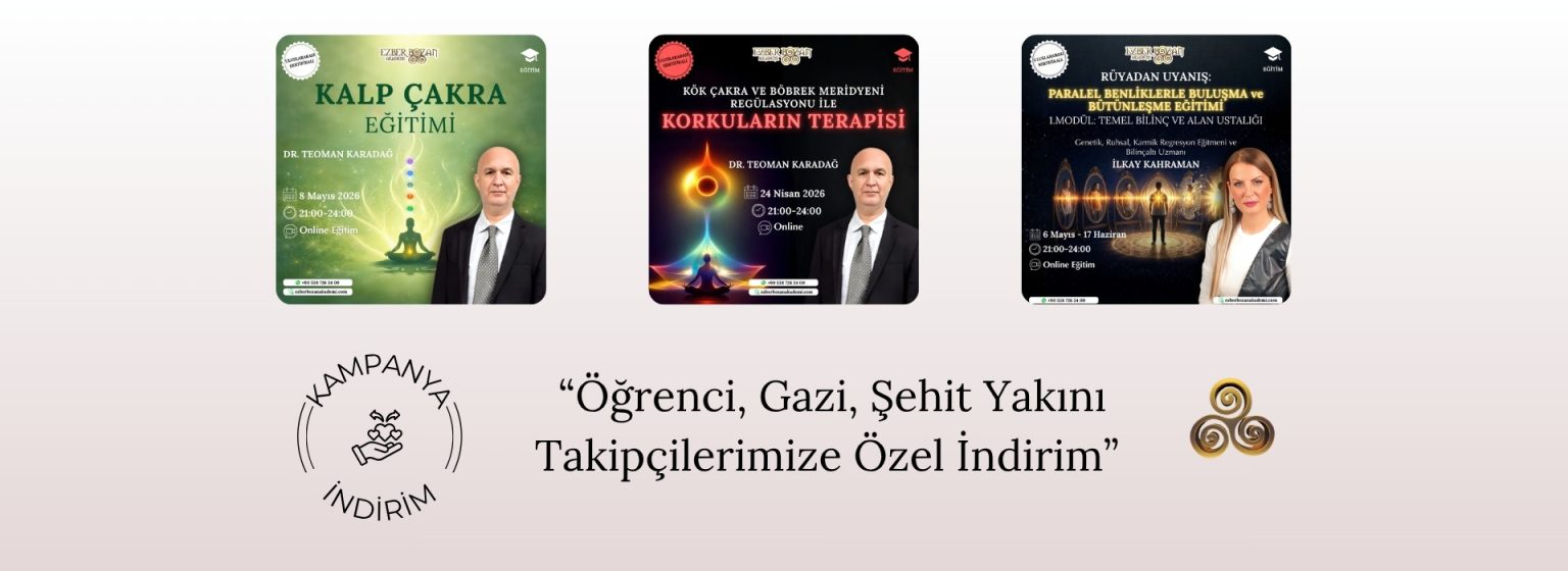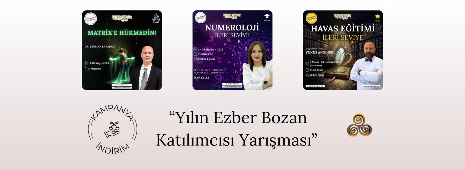 Ezber Bozan Akademi ile çok farklı ve ilgi çekici konularda, alanının en iyi eğitmenleriyle eğitimlerimize katılabilir, sır yolculuğunda yetkinliklerinizi geliştirerek kişisel gelişiminizi artırabilirsiniz. Aşağıda yer alan güncel eğitimlerimizi inceleyebilir, dilerseniz TÜM EĞİTİMLERİMİZİ İNCELEYİN butonunu kullanarak gerçekleştirdiğimiz tüm eğitimleri görebilirsiniz.