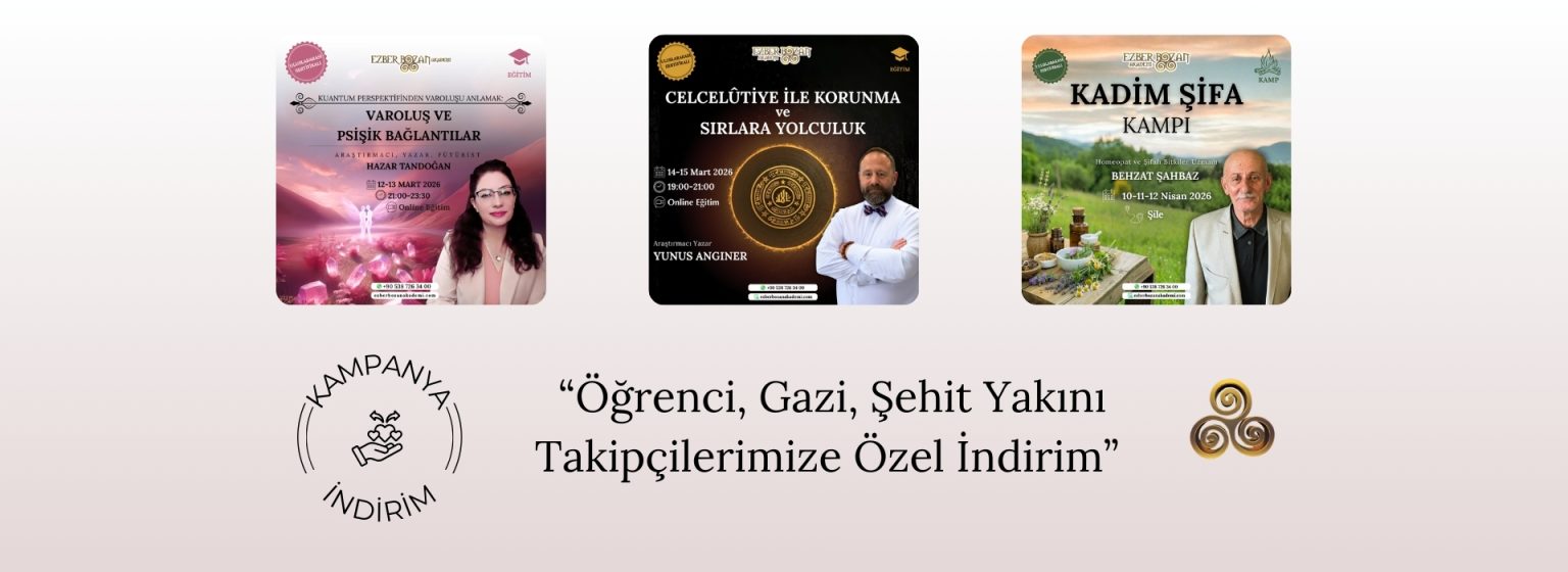 Ezber Bozan Akademi ile çok farklı ve ilgi çekici konularda, alanının en iyi eğitmenleriyle eğitimlerimize katılabilir, sır yolculuğunda yetkinliklerinizi geliştirerek kişisel gelişiminizi artırabilirsiniz. Aşağıda yer alan güncel eğitimlerimizi inceleyebilir, dilerseniz TÜM EĞİTİMLERİMİZİ İNCELEYİN butonunu kullanarak gerçekleştirdiğimiz tüm eğitimleri görebilirsiniz.
