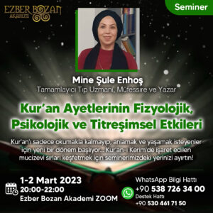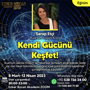 Ezber Bozan Akademi ile çok farklı ve ilgi çekici konularda, alanının en iyi eğitmenleriyle eğitimlerimize katılabilir, sır yolculuğunda yetkinliklerinizi geliştirerek kişisel gelişiminizi artırabilirsiniz. Aşağıda yer alan güncel eğitimlerimizi inceleyebilir, dilerseniz TÜM EĞİTİMLERİMİZİ İNCELEYİN butonunu kullanarak gerçekleştirdiğimiz tüm eğitimleri görebilirsiniz.
